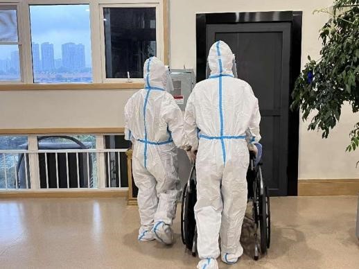 3、隨后,醫(yī)生安撫發(fā)熱長者,并退出長者居室,關閉入戶門并張貼“隔離區(qū)”標識,同時立刻匯報于院內(nèi)領導;
