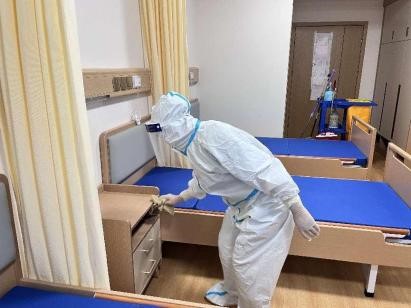 2、保潔做好防護進入發(fā)熱長者居室進行全面消毒和紫外線燈照射消毒。