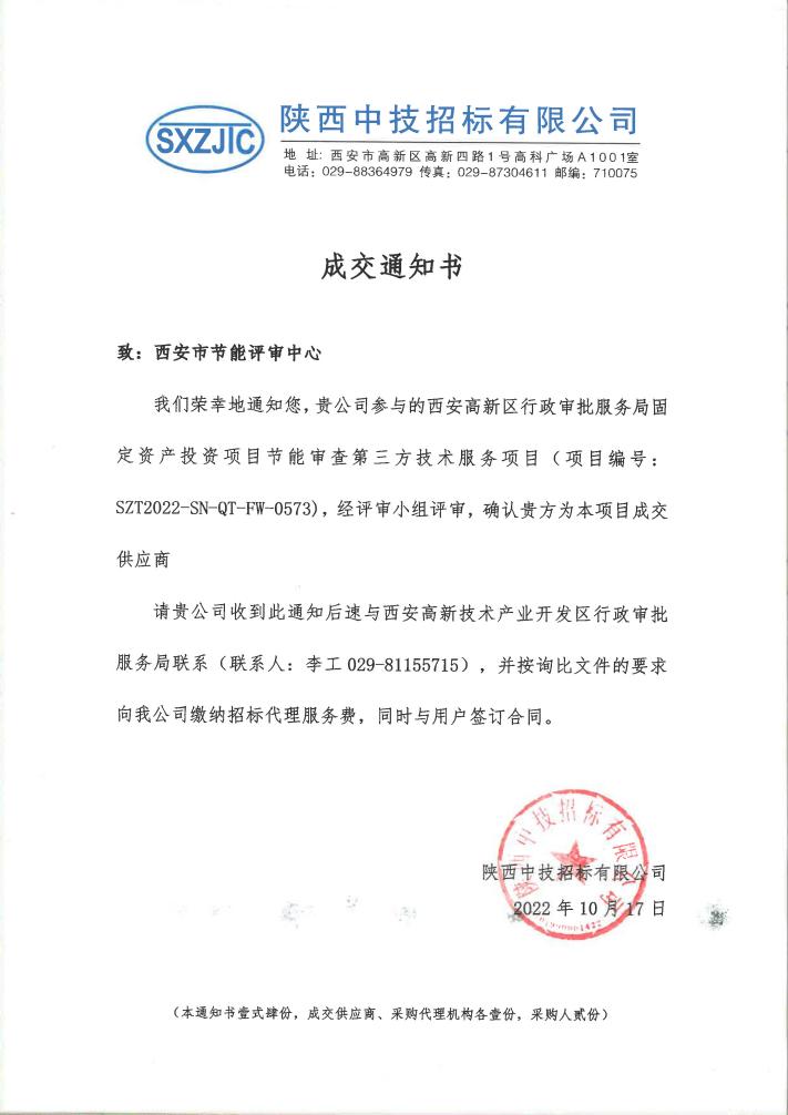 西安市節(jié)能評審中心在陜西省發(fā)展改革委投資咨詢評估“短名單”意向機構(gòu)庫征集工作中成功入圍陜西省發(fā)改委機構(gòu)庫,同時在西安市高新區(qū)行政審批服務(wù)局固定資產(chǎn)投資項目節(jié)能審查第三方技術(shù)服務(wù)征集活動中成為唯一指定第三方技術(shù)服務(wù)機構(gòu)。